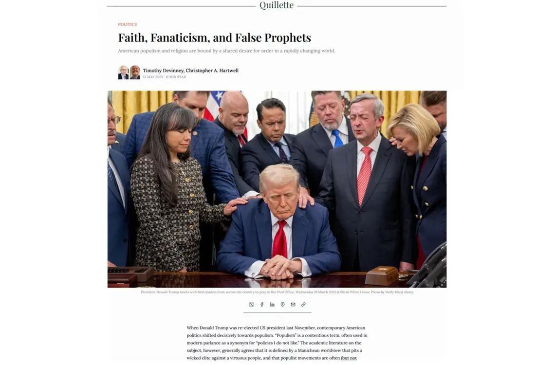 American populism and religion are bound by a shared desire for order in a rapidly changing world. Christopher Hartwell, head of the ZHAW International Management Institute, and Timothy Devinney explain the causes and consequences.
