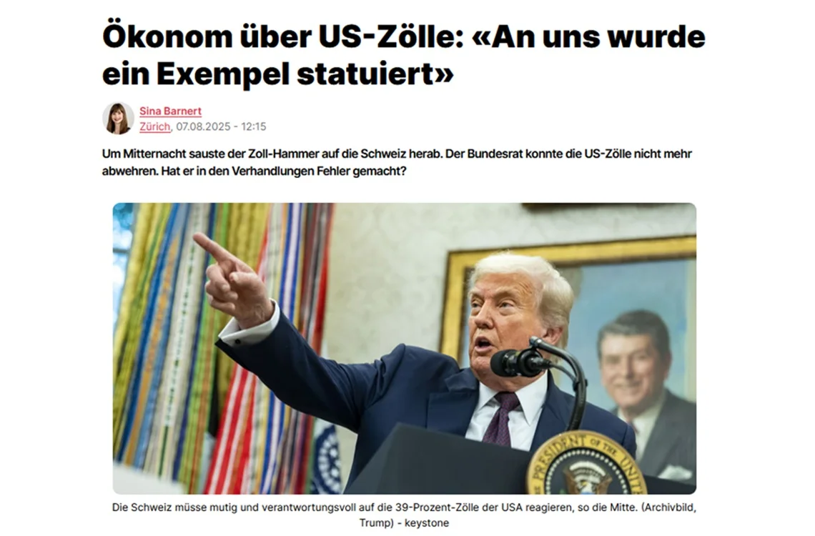 At midnight on August 7, the tariff hammer came down on Switzerland. The Federal Council could no longer fend off the US tariffs. Did it make mistakes in the negotiations? “No,” says Dominique Ursprung from the ZHAW Center for Geopolitics and Competitiveness in an interview.