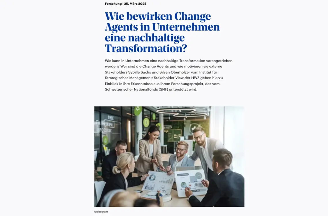 How can sustainable transformation be advanced within companies? Who are the change agents, and how do they motivate external stakeholders? Sybille Sachs and Silvan Oberholzer from the Institute for Strategic Management: Stakeholder View at HWZ provide insights into their findings from a research project supported by the Swiss National Science Foundation (SNSF) and involving the ZHAW as well.