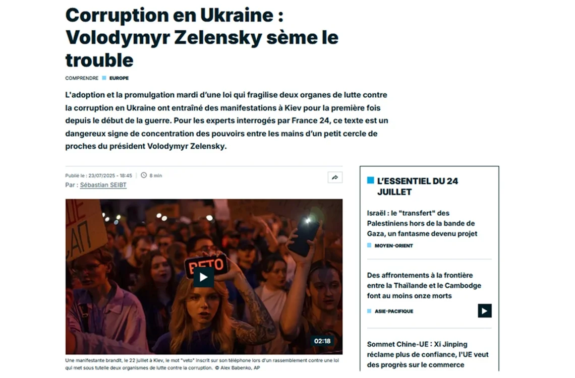 The passing of a law that weakens two anti-corruption bodies in Ukraine has led to demonstrations in Kyiv for the first time since the war began. According to experts interviewed by France 24, including Dr. Alina Nychyk from the ZHAW International Management Institute, the law is a dangerous sign of power being concentrated in the hands of a small circle of President Volodymyr Zelensky’s close associates.