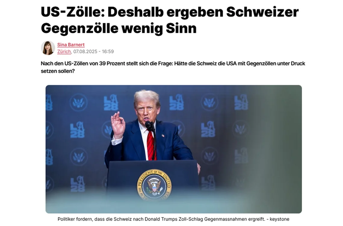 After the US tariffs of 39 percent, the question arises: should Switzerland have tried to put pressure on the USA with counter-tariffs? Dominique Ursprung from the ZHAW Center for Geopolitics and Competitiveness explains why this is not a good idea.