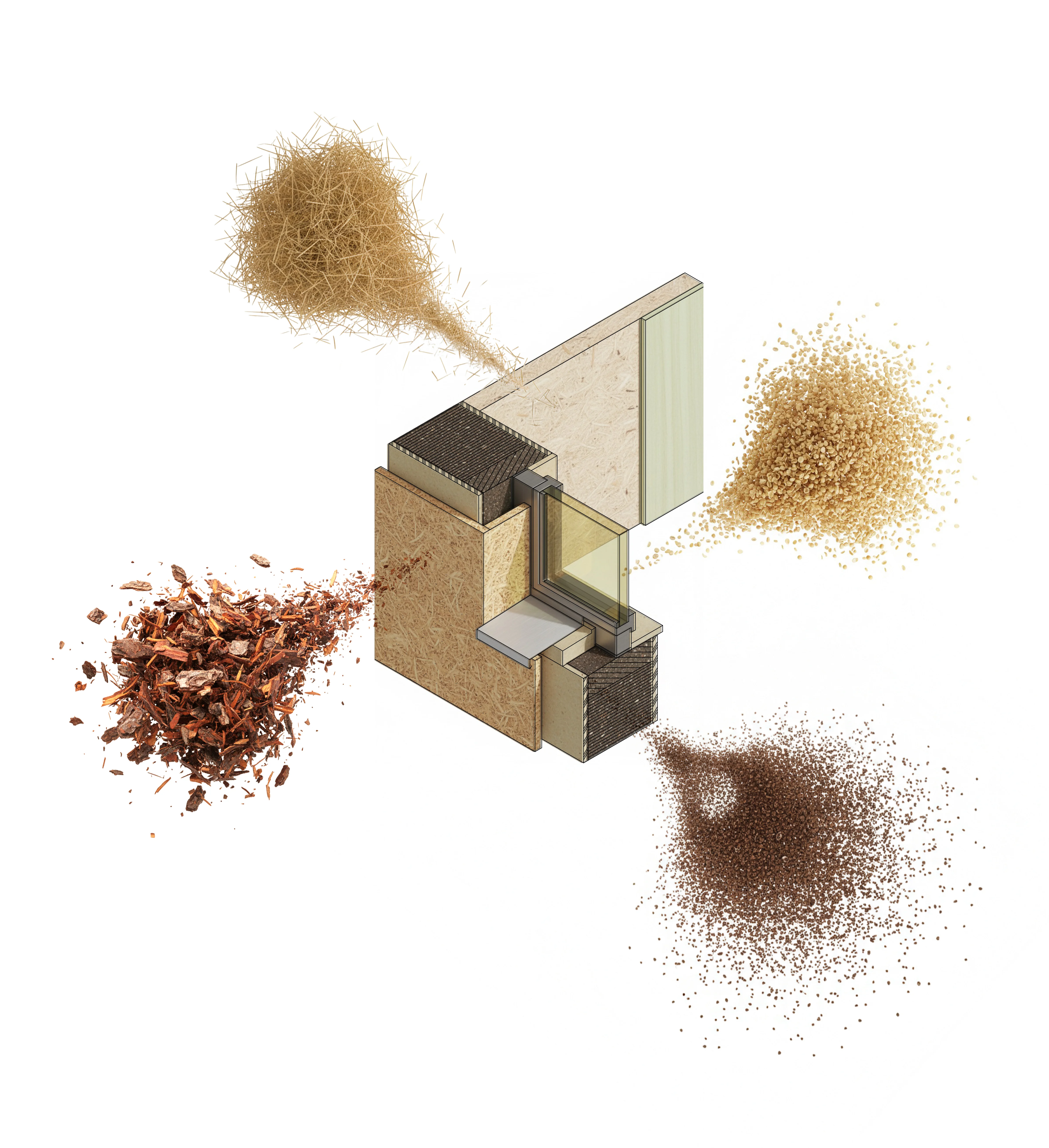 Im Kontext einer zirkulären Baupraxis rücken Materialien in den Fokus, deren Rohstoffgewinnung und Verarbeitung Teil erneuerbarer Kreisläufe sind. Dazu gehören biobasierte Materialien aus nachwachsenden Ressourcen, erdbasierte Werkstoffe wie Lehm sowie Sekundärrohstoffe aus Neben- und Abfallströmen der Land- und Forstwirtschaft.