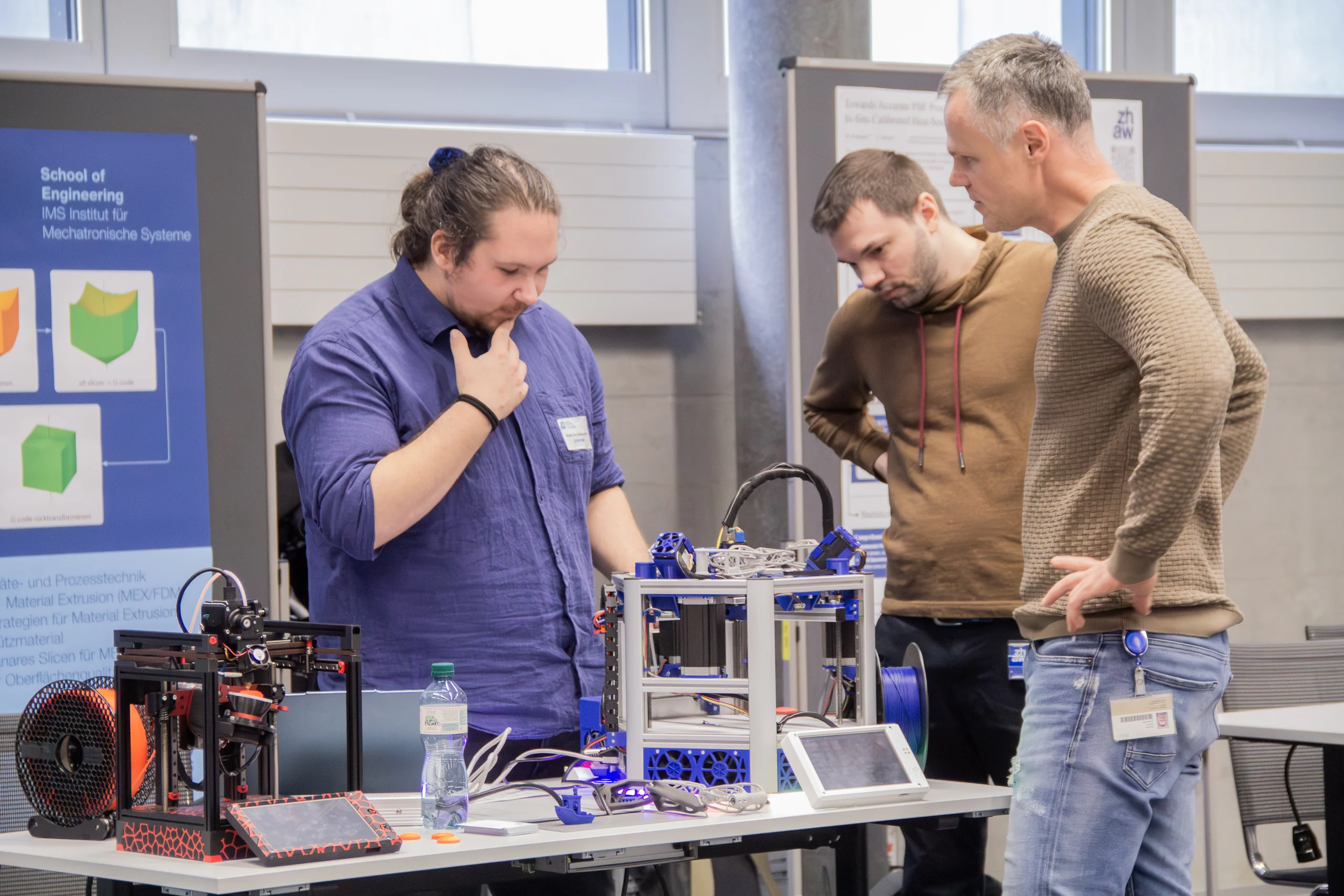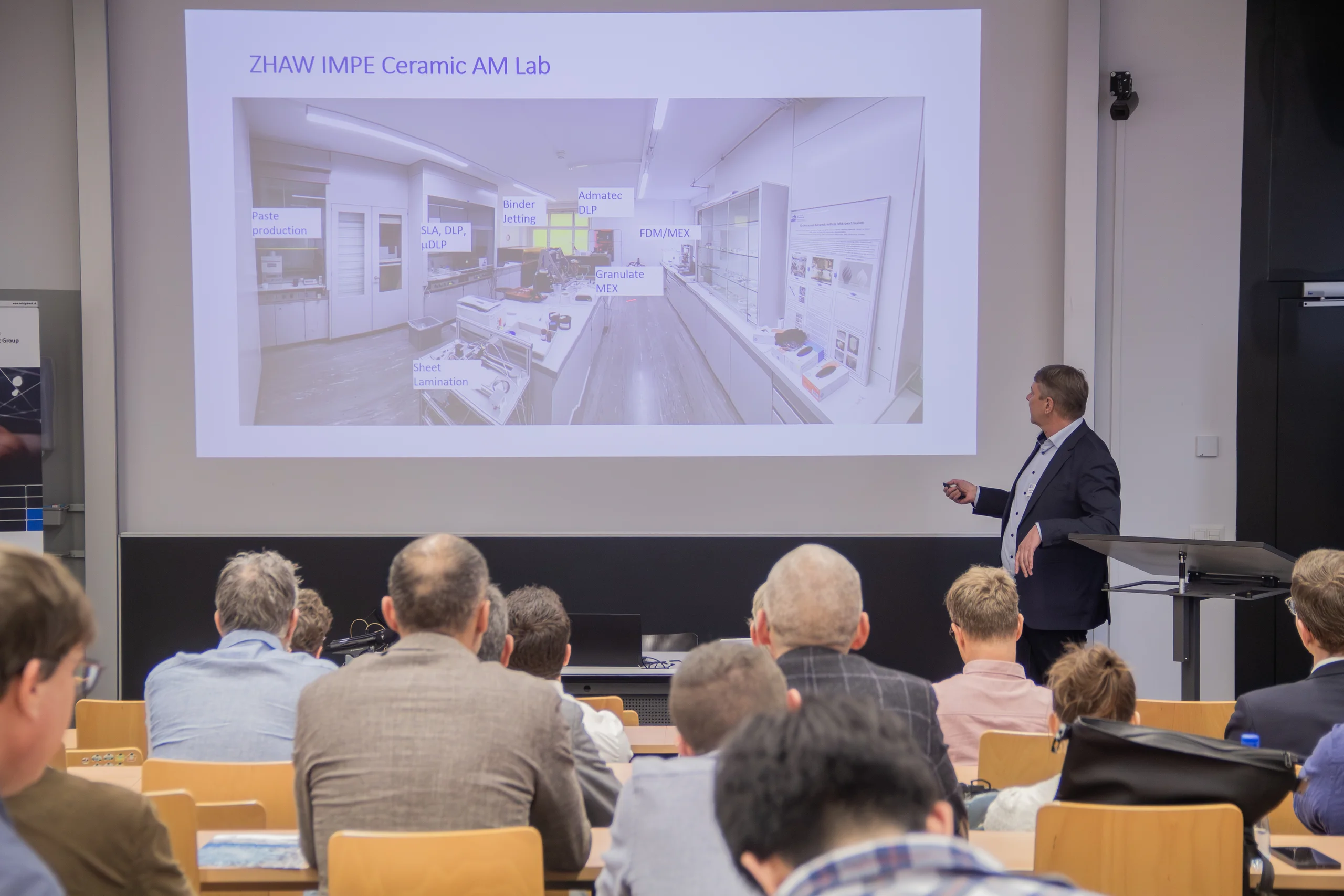 Das Institute of Materials and Process Engineering IMPE ist diesjähriger Veranstalter der Konferenz 'Angewandte Forschung & Entwicklung in der additiven Fertigung' der interdisziplinären ZHAW Plattform 'Additive Manufacturing'. Fokusthema der Konferenz ist die 'Werkstoff- und Verfahrensentwicklung'. Expert:innen aus Industrie und Forschung diskutieren neueste Trends, Verfahren und Anwendungen der additiven Verarbeitung von Werkstoffen. An der begleitenden Ausstellung präsentieren unsere Partner neueste Produkte und Dienstleistungen.
