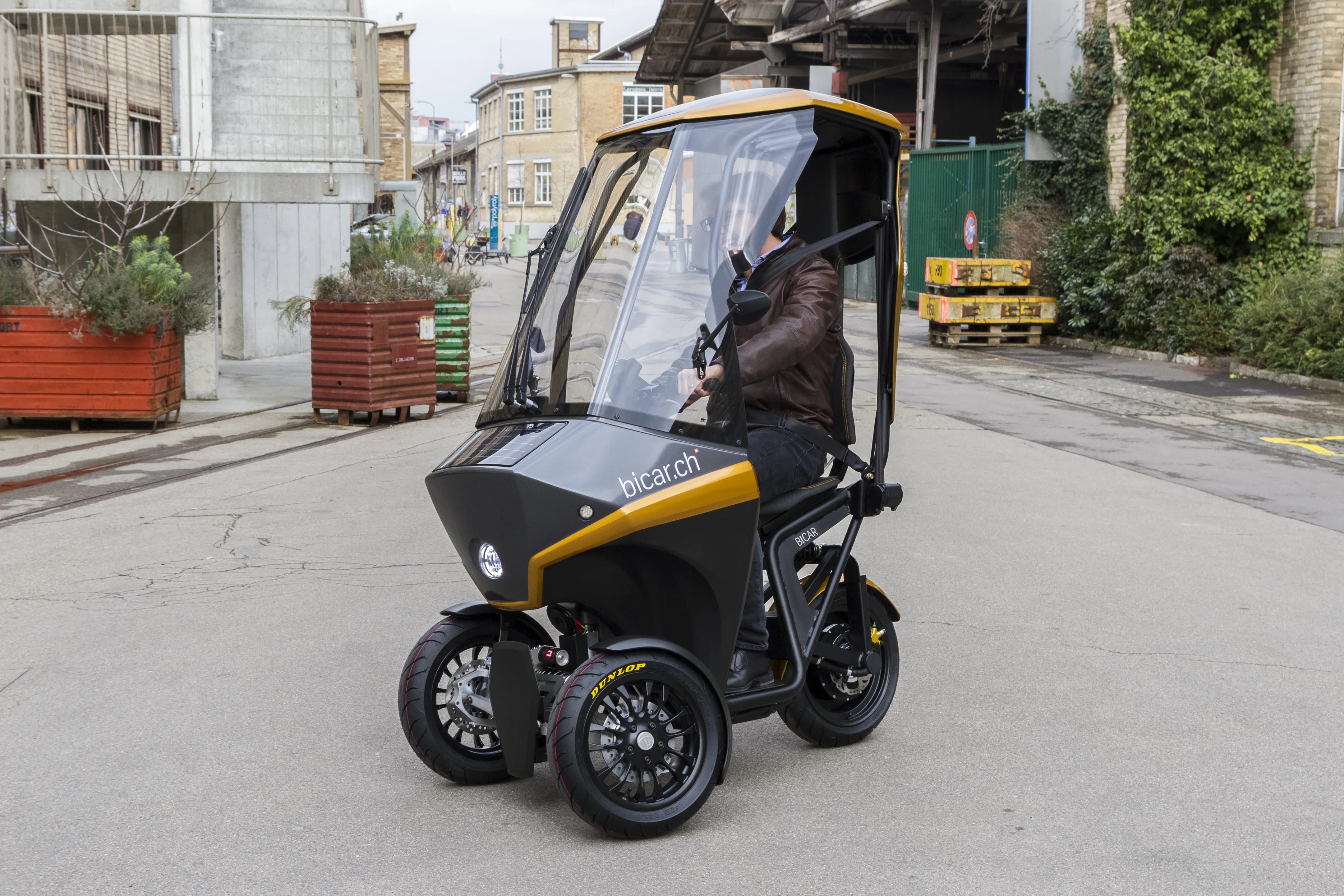 Kurzbeschrieb dieses Projekts: Entwickelt im Rahmen eines interdisziplinären Forschungsprojekt mit Experten aus Verkehrstechnik, Nachhaltigkeit und Produktentwicklung ist BICAR ein Wegweisendes Leuchtturmprojekt der Mobilität. Der daraus entstanden Spin-off entwickelte BICAR zur Marktreife weiter und brachte des Fahrzeug mit dem Namen «roo» auf den Markt. Das Fahrzeug weckt international grosses Interesse und Städteplaner, Mobilitätsverantwortliche und Pendler können dank dem Fahrzeug BICAR eine neue Form der Mobilität erfahren. Wettergeschützt, sicher dank einem Dreipunktgurt und stabilem Stand mit 3 Räder fährt sich BICAR leicht von A nach B. Mit den integrierten Solarzellen auf dem Dach wird die Batterie von BICAR automatisch aufgeladen und das kompakte Design ermöglicht das Parken auf gewöhnlichen Motorradabstellplätzen.