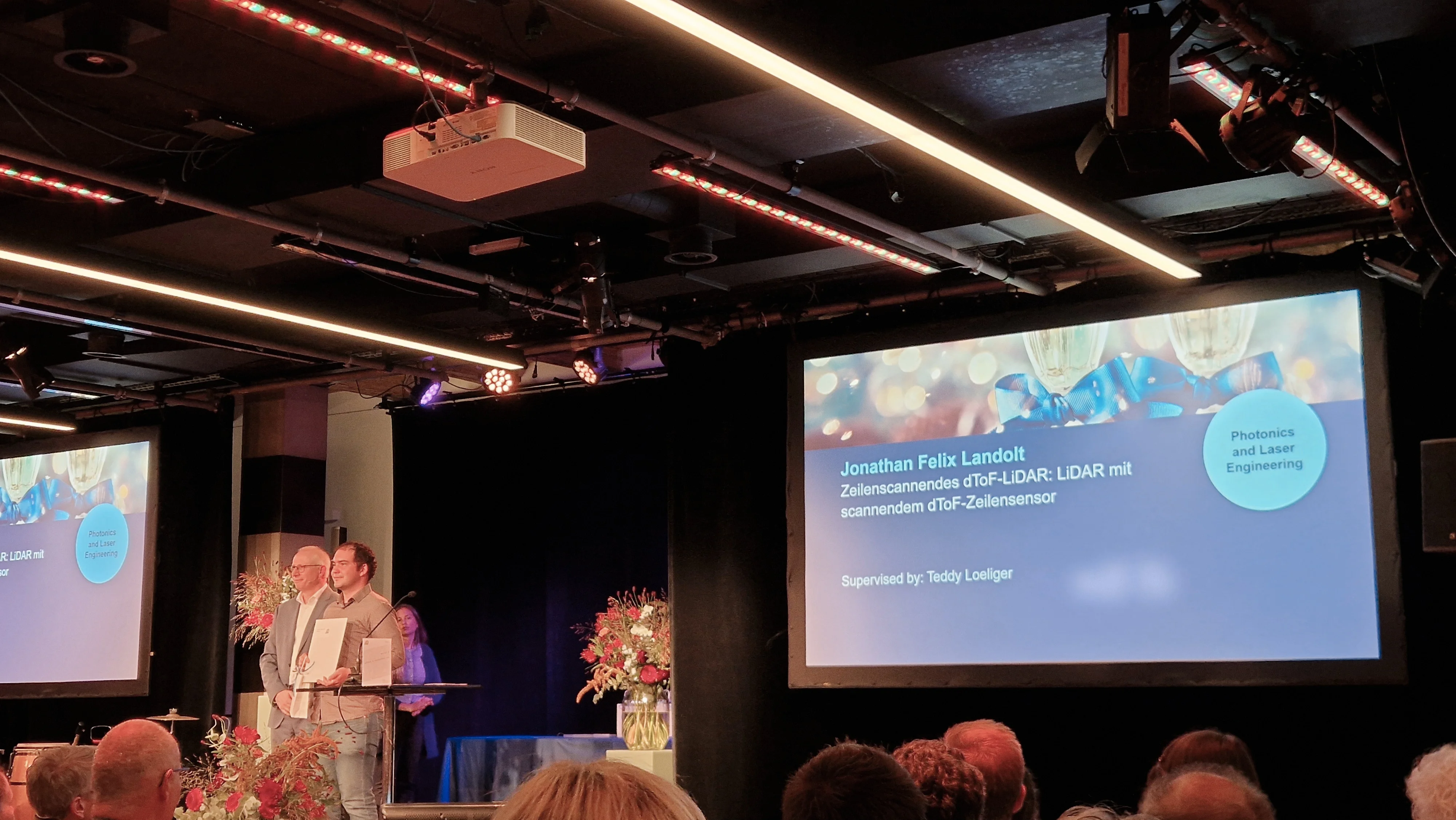 Die Masterarbeit von Dominic trägt den Titel “RFSoC-basierter Demonstrator eines PRN-Radars”, die von Jonathan den Titel “Zeilenscannendes dToF-LiDAR: LiDAR mit scannendem dToF-Zeilensensor” (hier ein Youtube-Video dazu).