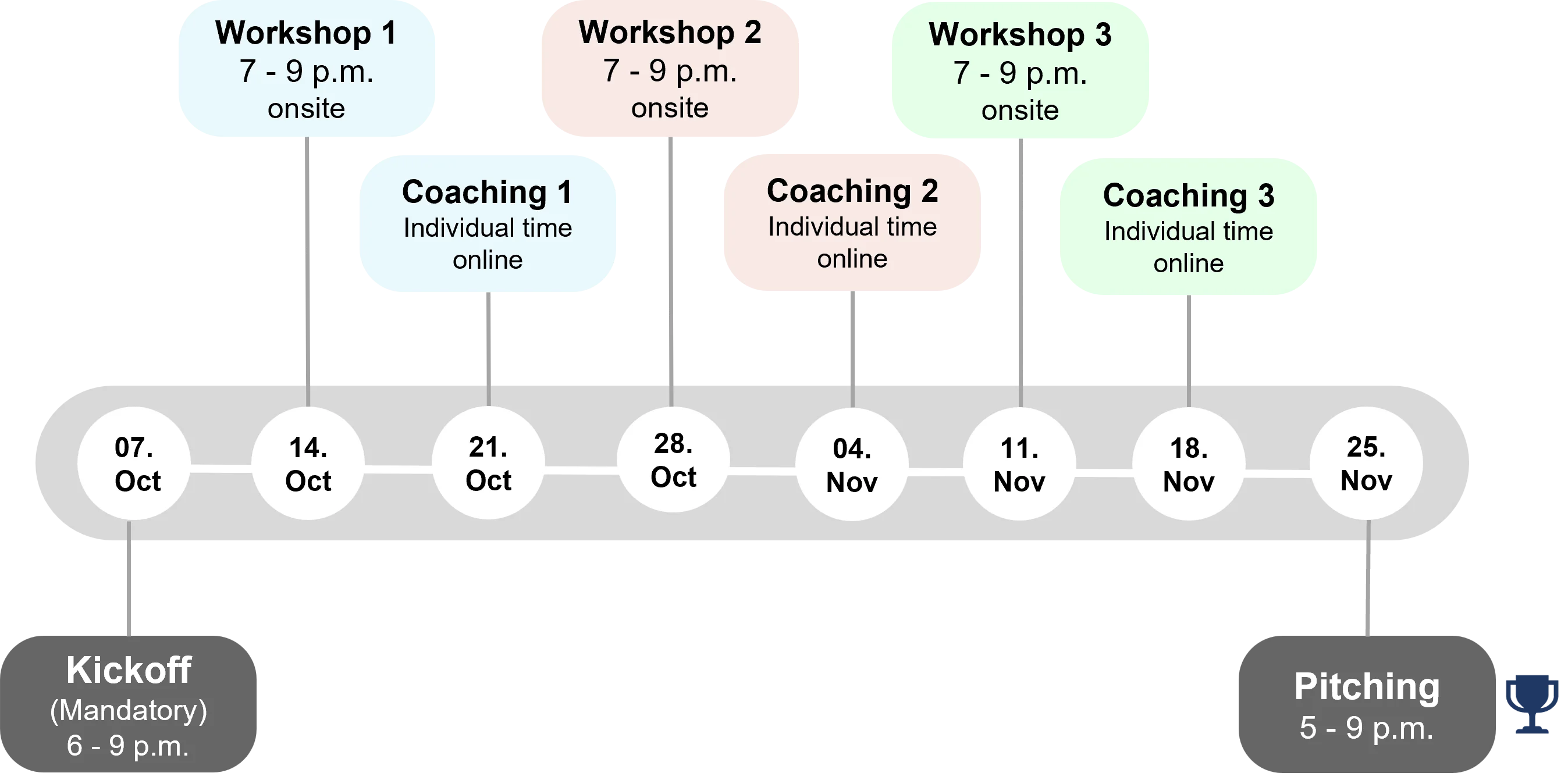 Mit deiner Anmeldung zum Sustainability Booster bestätigst du die Teilnahme am Kick-Off Event. Sollte deine Start-up Idee ausgesucht werden oder du möchtest dich einem Team anschliessen, bist du ebenfalls zu den drei Workshops & Coachings und dem finalen Pitch-Event eingeladen, wo Preise für die besten drei Ideen verliehen werden.