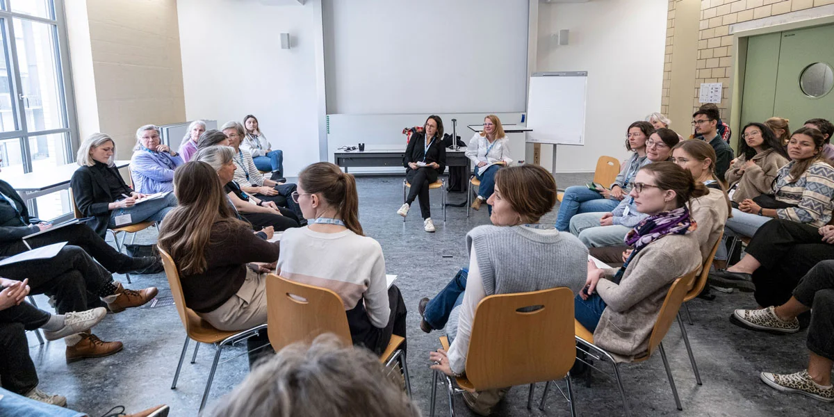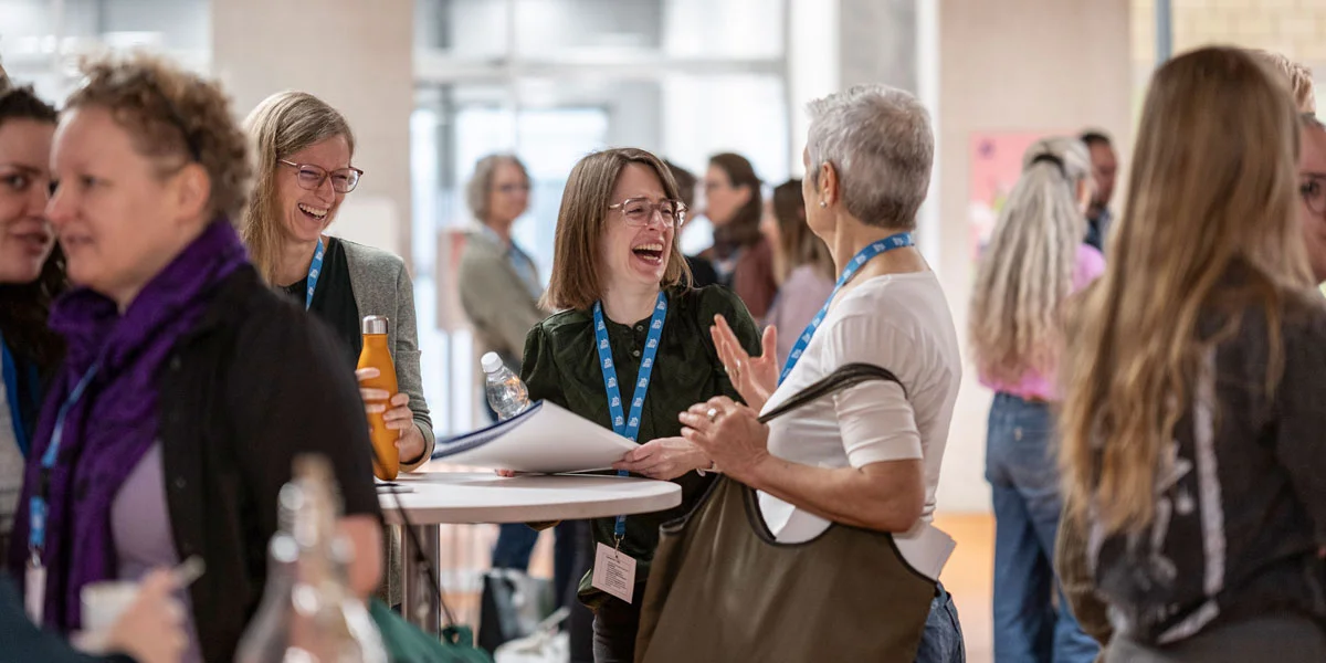 Ein Ergo‑Gipfel wäre kein Ergo‑Gipfel ohne die vielen Gelegenheiten für Austausch und Vernetzung. So auch dieses Jahr: Neben den «Seilschaften», den Diskussionsrunden im Anschluss an die Referate, und der langen Mittagspause bot vor allem das «Basislager» am Nachmittag Raum für intensiven Dialog. In drei Runden konnten die Teilnehmer:innen ihre Themen wählen. Nach einem kurzen Input folgte eine zwanzigminütige Diskussions- und Fragerunde. Die inhaltliche Vielfalt reichte von Frugal Design, Mobilitäts‑, Post‑COVID‑ und KI‑Forschung über Masterarbeiten zur Domiziltherapie und dem COPM‑Assessment bis hin zum Partizipationsprozess im GSR Autismuszentrum.