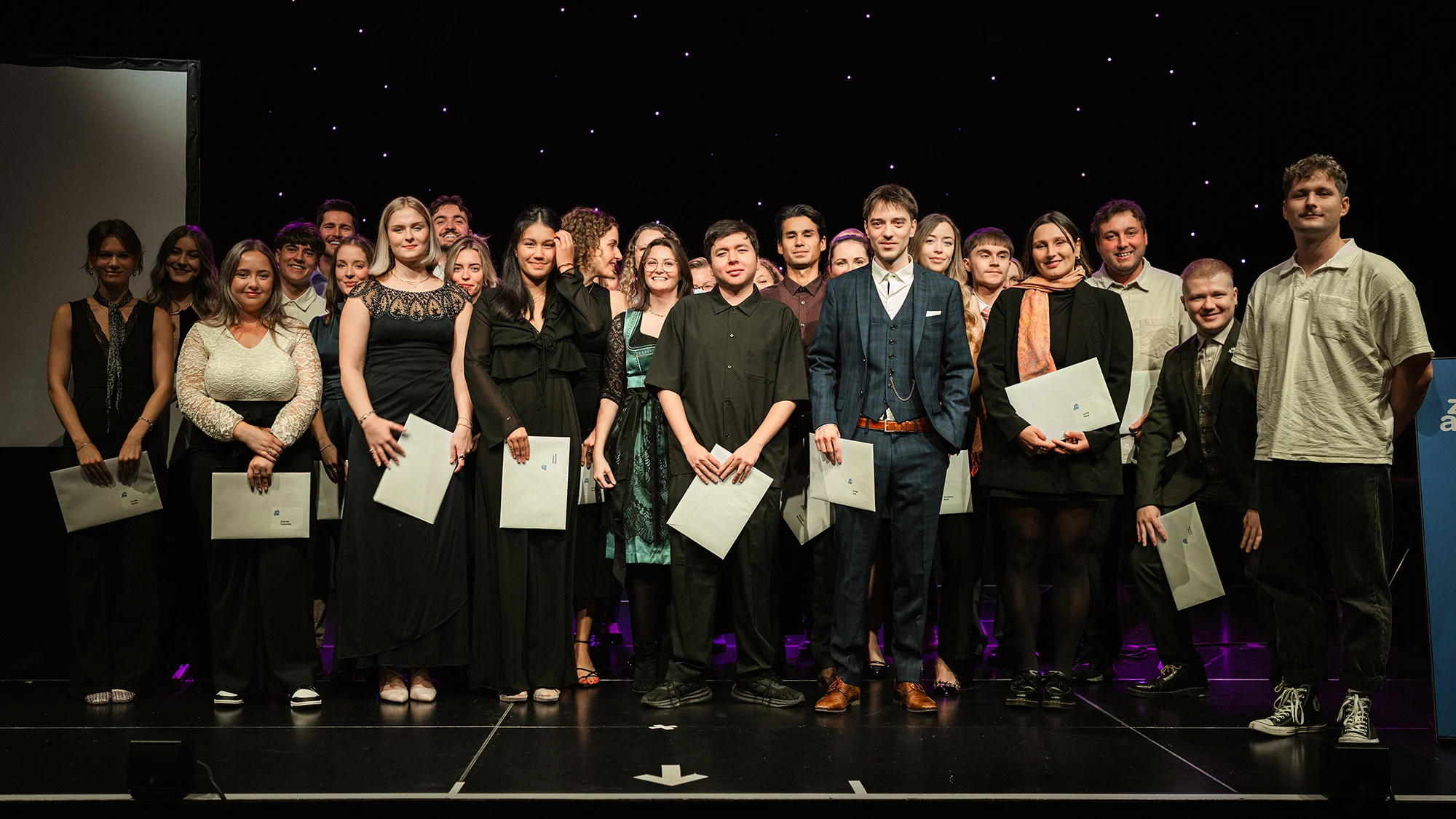 Am 3. Oktober wurde das Casinotheater Winterthur erneut zum Treffpunkt von Freude, Stolz und Perspektiven. Gemeinsam mit ihren Familien, Freund:innen und Dozierenden blickten 105 Absolvent:innen des Bachelorstudiengangs Kommunikation und Medien auf ihre Studienzeit zurück – und zugleich in eine vielversprechende Zukunft.
