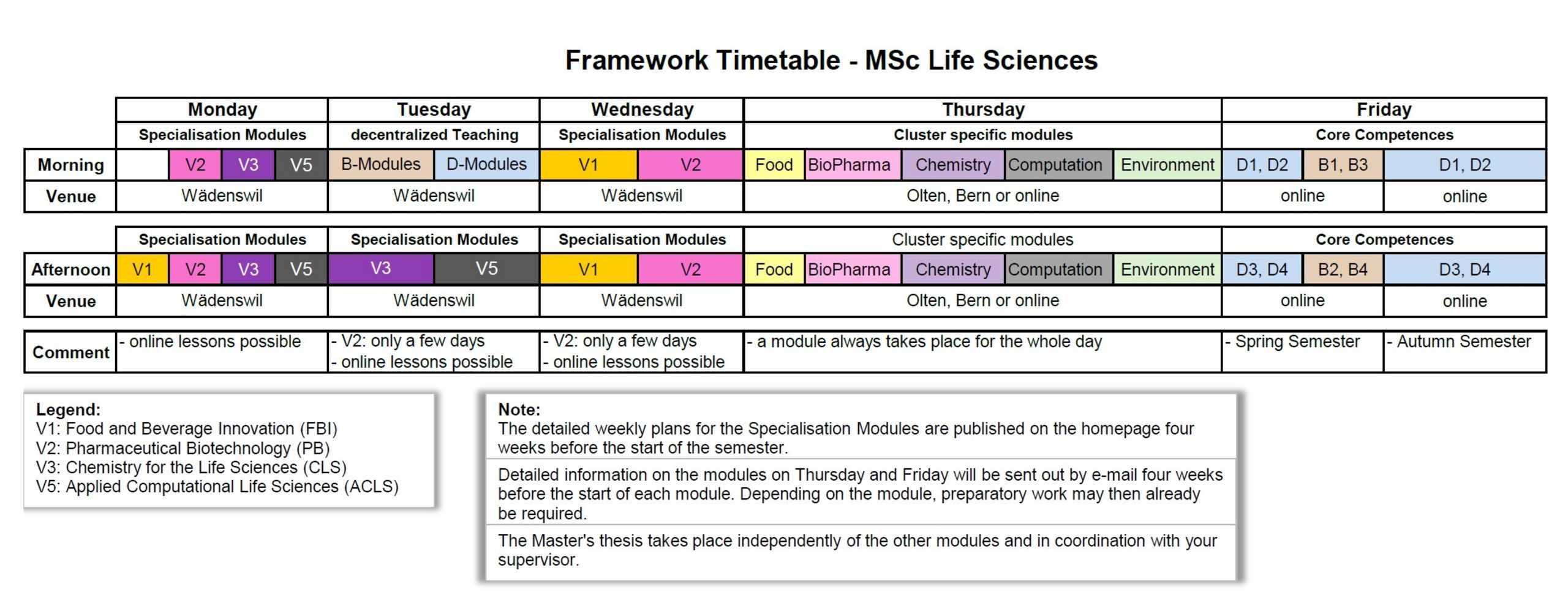 | Frühlingssemester | Änderungen können bis Dienstag in KW09 an msc-ls@zhaw.ch gemeldet werden. |