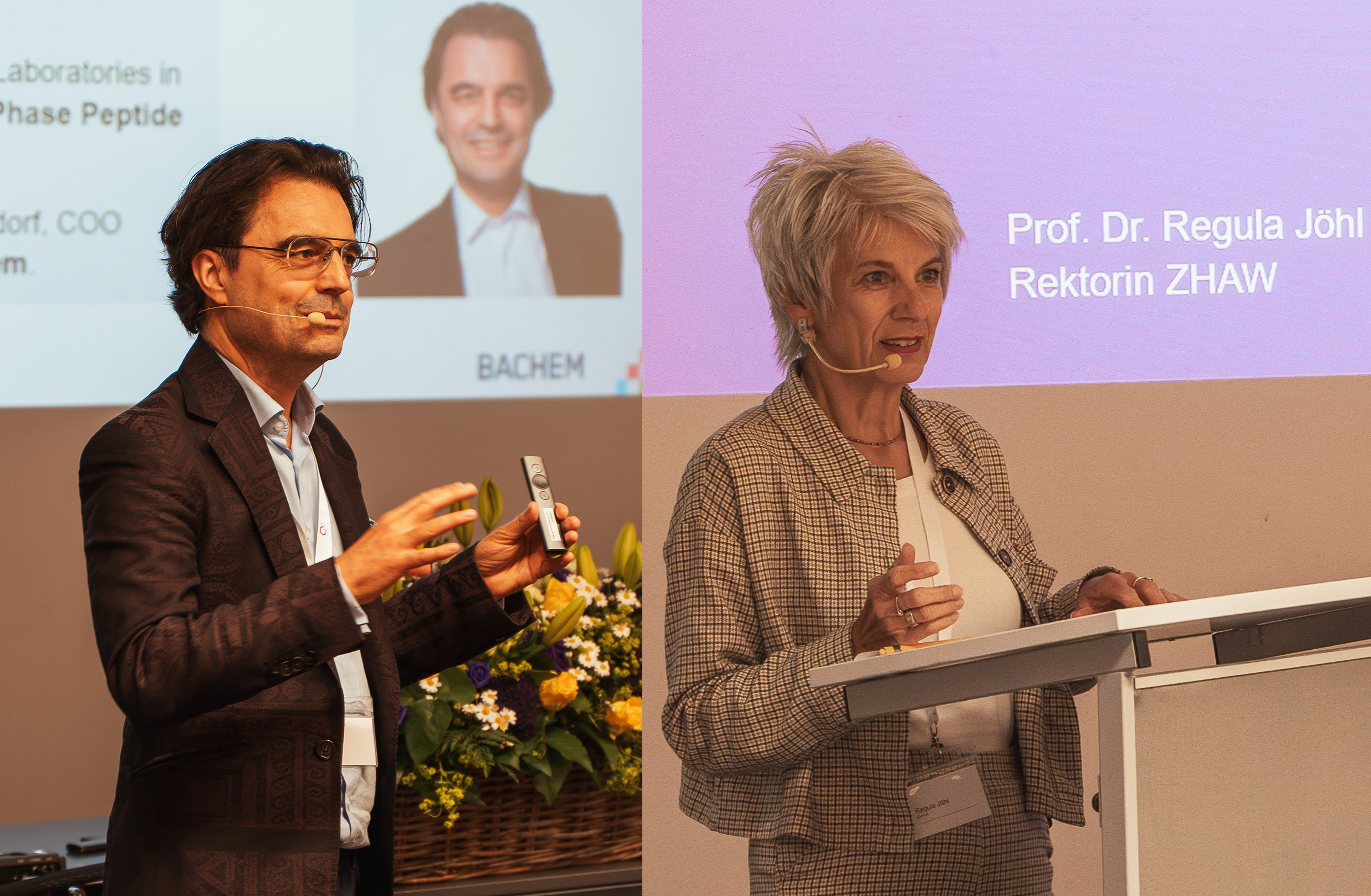- Bild 3: Für die Festansprachen zur Jubiläumsveranstaltung konnten Thomas Meier, CEO Bachem AG, Vorstandsmitglied von scienceindustries und Absolvent des Chemiestudium noch am Technikum in Winterthur, sowie Regula Jöhl, ZHAW-Rektorin und promovierte Biotechnologin, gewonnen werden. (JPG 1.11 MB)