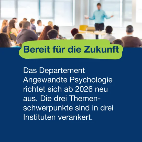 Psychische Gesundheit ist heute eine zentrale gesellschaftliche Aufgabe: Belastungen durch Arbeits- und Leistungsdruck, Unsicherheit, soziale Veränderungen und Krisen nehmen zu, und psychische Erkrankungen gehören zu den häufigsten Ursachen für eingeschränkte Lebensqualität und Arbeitsfähigkeit. Das Institut für Mental Health bündelt deshalb Expertise über die ganze Lebensspanne, entwickelt und erforscht praxisnahe Lösungen und bildet Fachpersonen aus, die psychische Gesundheit nachhaltig stärken.