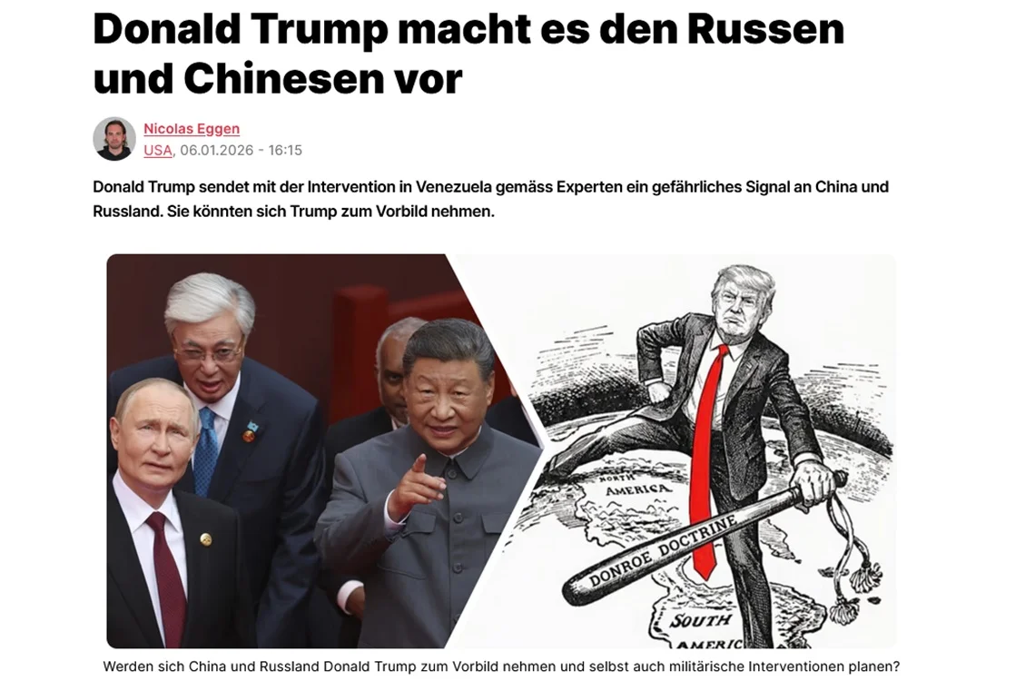 Donald Trump sendet mit der Intervention in Venezuela gemäss Experten ein gefährliches Signal an China und Russland. Sie könnten sich Trump zum Vorbild nehmen. Im Artikel kommen Leiter Prof. Florian Keller und Dominique Ursprung vom ZHAW Center for Geopolitics and Competitiveness zu Wort.