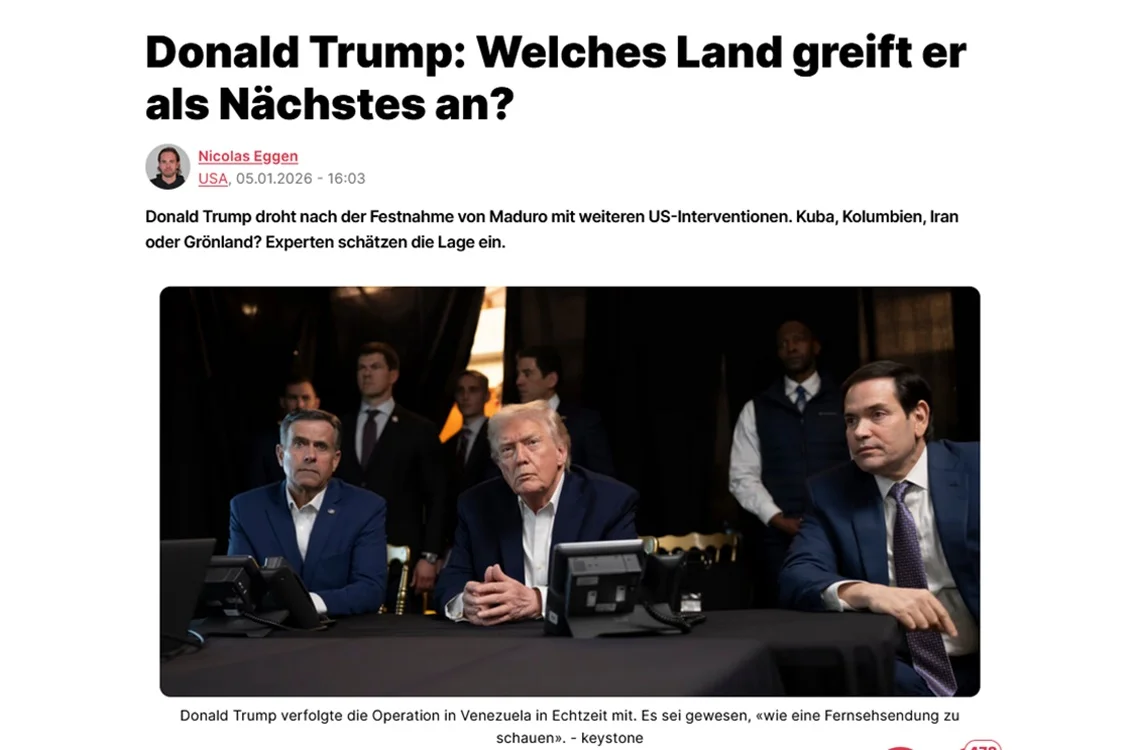 Donald Trump droht nach der Festnahme von Maduro mit weiteren US-Interventionen. Kuba, Kolumbien, Iran oder Grönland? Experten schätzen die Lage ein, darunter Dominique Ursprung vom ZHAW Center for Geopolitics and Competitiveness.