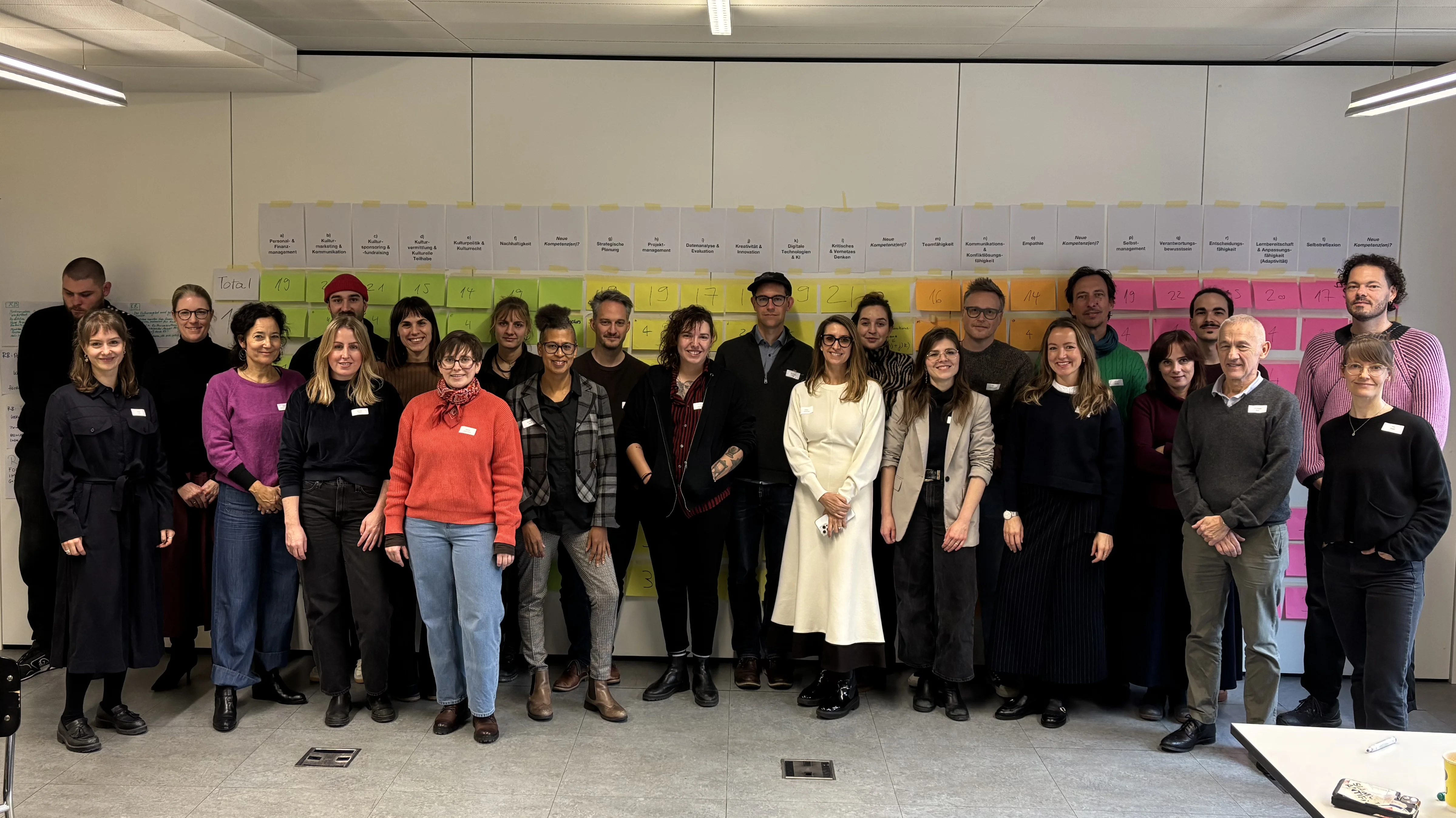 Nach einer gemeinsamen Kaffeepause nahmen die Gruppen ihre Arbeit wieder auf. Basierend auf den in einem ersten Schritt definierten Rahmenbedingungen und möglichen Zukunftsszenarien diskutierten und bewerteten die Gruppen mit Hilfe einer Punkteskala die Relevanz verschiedener Kompetenzen (Fach-, Sozial-, Methoden und Selbstkompetenzen). Danach ging es zurück ins Plenum und die einzelnen Gruppen stellten ihre Szenarien und die daraus folgende Relevanz der einzelnen Kompetenzen vor. So konnten szenarioübergreifende und damit besonders wichtige Kompetenzen und Anforderungen für die Zukunft ermittelt werden. Die Spannweite reichte von digitalem Upskilling und ökologischer Handlungskompetenz über kollaborative Führungsansätze, Organisationsentwicklung bis hin zu strategischer Kommunikation und politischem Verständnis. Durch diese kollaborative Herangehensweise entstand ein differenziertes Bild möglicher Zukunftspfade und ein gemeinsames Verständnis dafür, welchen Beitrag Kulturmanager:innen in einer sich wandelnden Welt leisten können.