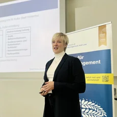 Danach gingen wir zum Hauptprogrammpunkt des Nachmittags über: Praxisimpulse zur Zukunft des Kulturmanagements. Ehemalige Absolvent:innen des MAS Arts Management berichteten in Inputreferaten über ihren Werdegang, ihre jetzige Rolle in der Kulturszene, über Herausforderungen, Chancen und ihre Visionen für die Zukunft. Anschliessend gab es die Möglichkeit für Fragen und Diskussionen.