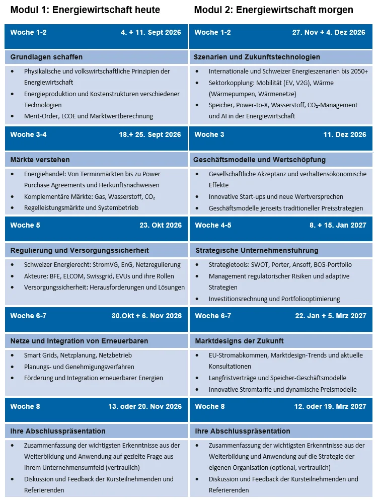 Certificate of Advanced Studies in Neue Energiewirtschaft (12 ECTS)