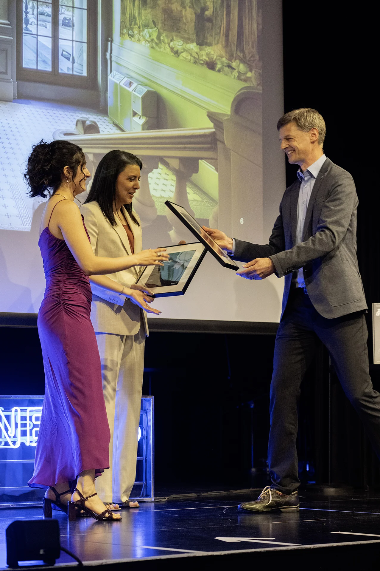 Die gestenbasierte Steuerung von Hörgeräten hat das Potenzial, deren Nutzbarkeit und Akzeptanz zu verbessern. Für ihre Bachelorarbeit erhielten Carla Vaquero und Daniela Monteiro Simões den mit 4'000 Franken dotierten regionalen Siemens Excellence Award. Gleichzeitig sind sie für den nationalen Siemens Excellence Award in Höhe von 10'000 Franken nominiert. Mit dem in der Arbeit entwickelten Modell arbeitet der Wirtschaftspartner der Bachelorarbeit Sonova weiter.