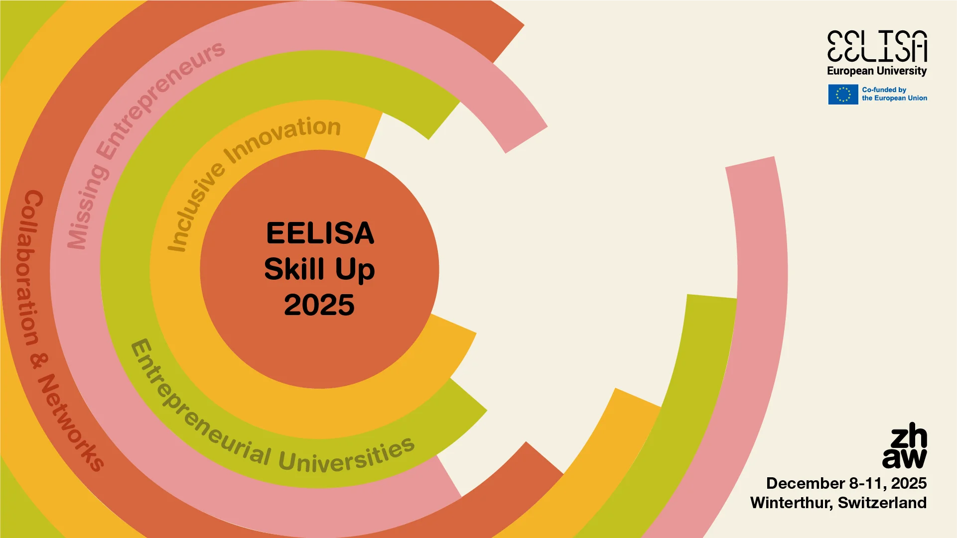 EELISA Skill Up 2025: Collaboration, Inclusion & Entrepreneurial Universities takes place from December 8-11, 2025 at ZHAW in Winterthur, Switzerland. Organized for the EELISA European University Alliance, this dynamic week will bring together researchers, educators, and innovators to advance innovation and entrepreneurship in research and education: