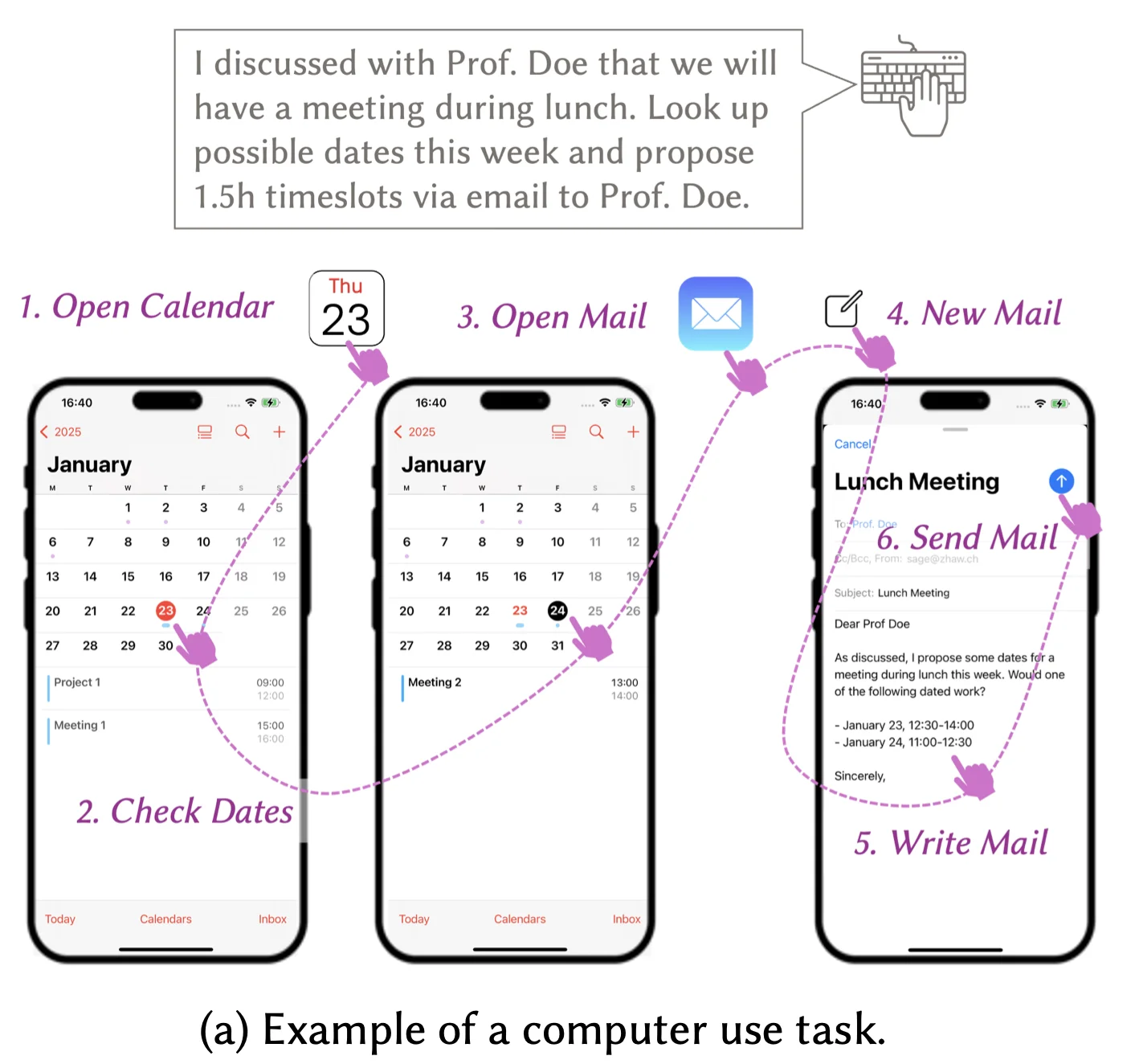 In a second publication, “A Comprehensive Survey of Agents for Computer Use: Foundations, Challenges, and Future Directions", published in the Journal of Artificial Intelligence Research, Pascal Sager, Benjamin Meyer and colleagues analyze the rapidly developing field of Agents for Computer Use. These systems are designed to perform complex tasks on digital devices by interacting with software through human-like actions such as mouse movements, clicks, and gestures.