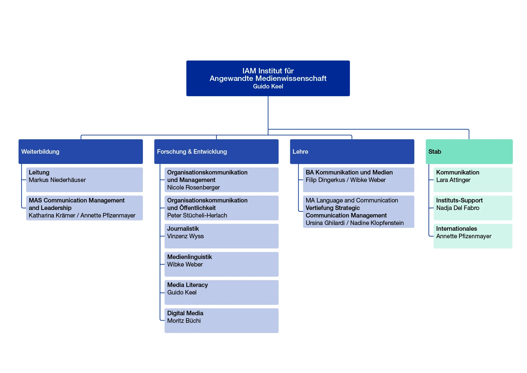 The IAM provides scientifically based training and continuing education courses for the main professional fields of public communication: journalism and organisational communication. It conducts research and helps students to develop the skills they need to shape, manage and guide communication processes in these professional fields. To this end, the IAM uses knowledge from the disciplines of linguistics, media studies and communication studies, and links media linguistics with the realm of communication studies and the world of professional practice in a transdisciplinary manner. The IAM works at the interface between science and industry, makes theoretical knowledge usable for practitioners and integrates the knowledge and experience gained in practical settings. The IAM systematically acquires specialist knowledge through its research and incorporates this into its consultancy services as a source of expertise. Findings from the IAM’s research and consulting are integrated in its teaching activities.