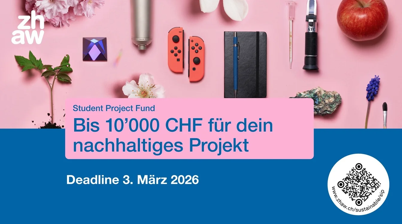 Do you have an innovative idea to advance sustainability at ZHAW or beyond? The Student Project Fund by ZHAW sustainable supports you in turning your idea into practice – with up to CHF 10,000 in funding and dedicated mentoring.