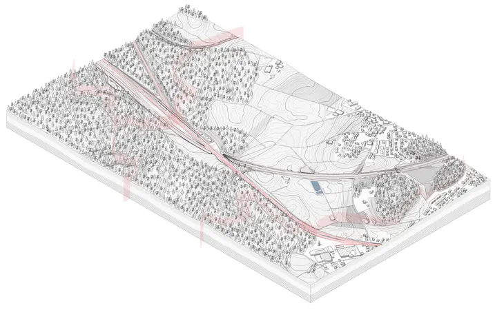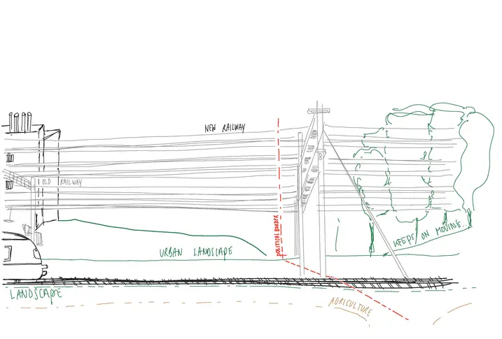 Infrastructure (railways, highways, airports) intersecting and transforming political and environmental border contexts, focusing on Zurich’s evolving border dynamics.