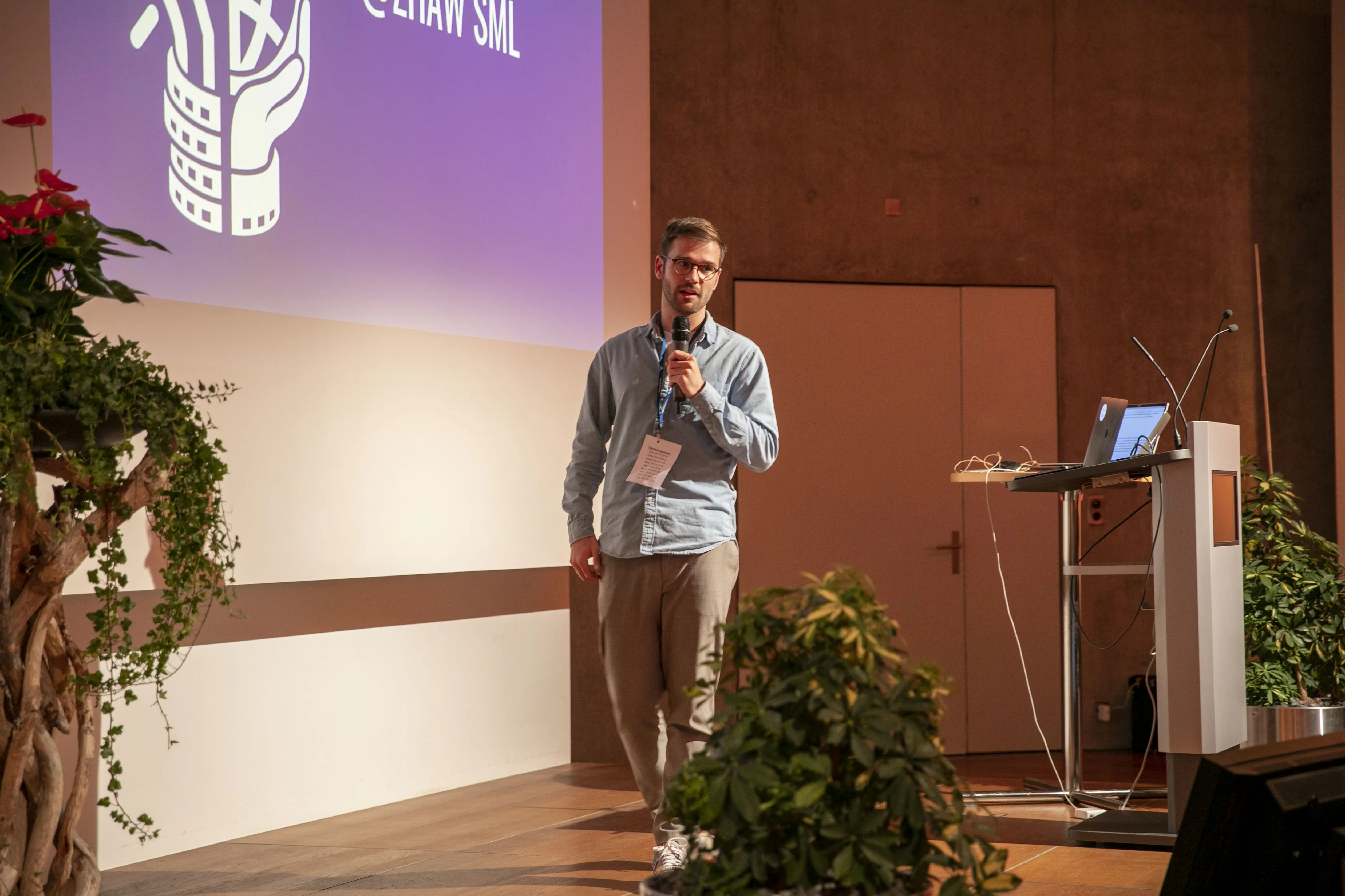 Since July, five SML students (Silvan Bergmann, Yves Hofmänner, Pascal Grütter, Alexandra Büchi, and Jelena Simic) had been getting everything ready for this day, making all the decisions from the content and the speakers to running the event. They were supported by ZHAW School of Management and Law staff members Marie-Christin Weber and Diana Krüger. Some 330 participants took the opportunity to learn more and exchange ideas on the topic of sustainability at an information fair, three workshops, an impact start-up pitch, and two keynote speeches.