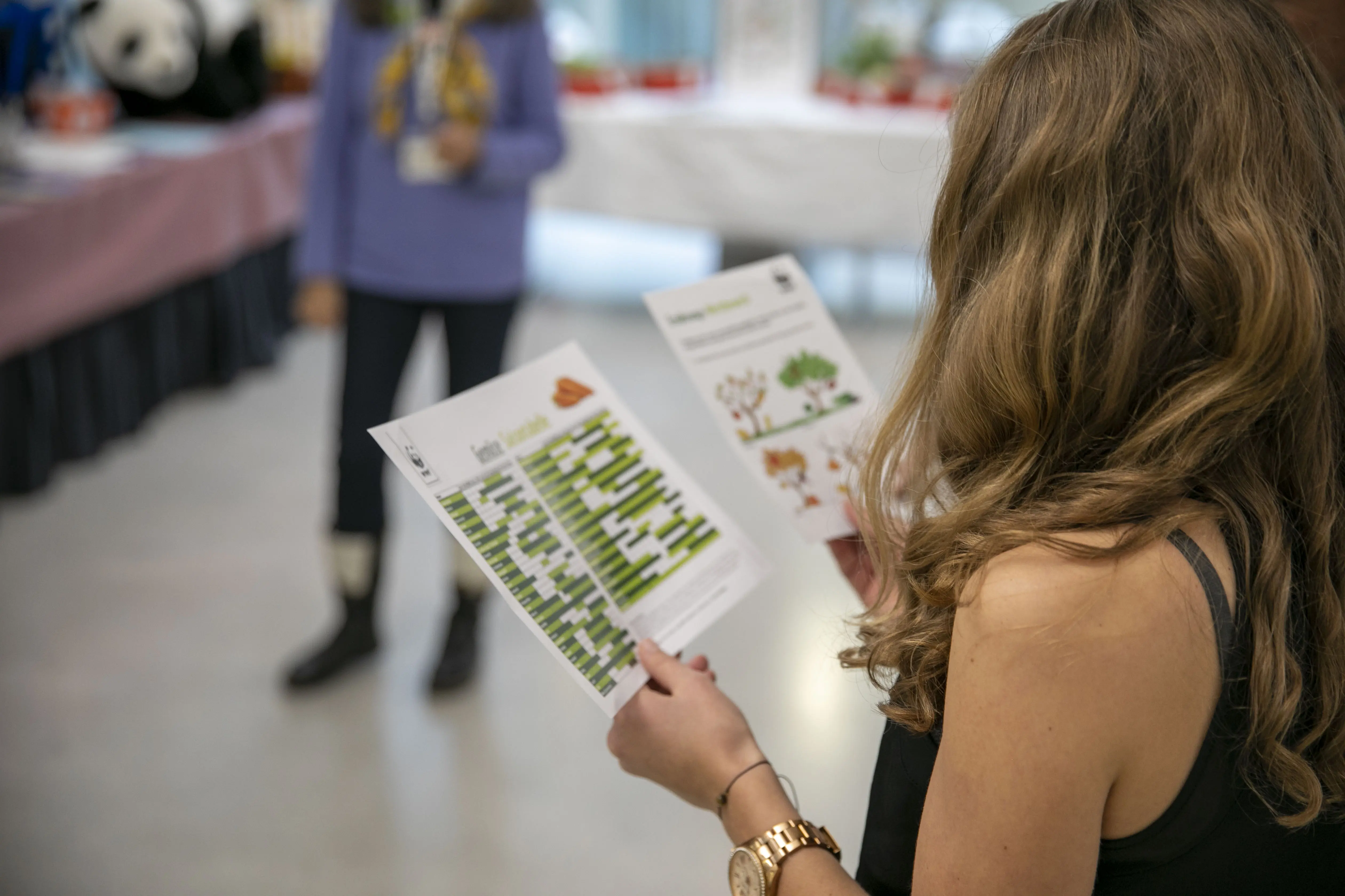 Sustainability Day kicked off with an information fair that gave participants the opportunity to reflect on their behavior and how much they already know about sustainability: Do I eat according to what’s in season? What social responsibility do companies bear? To what extent does my lifestyle shape tomorrow's society? The organizers were particularly interested in the relationship of the exhibitors to Winterthur as a location. "A broad spectrum of organizations that contribute to sustainable development is represented in Winterthur. We wanted the information fair to highlight this diversity," the five students explained. Among others, Public Eye Winterthur, the online magazine "Das Lamm", the "Stadtgmües" campaign of Winterthur’s Environmental and Health Department, and WWF Zurich were represented at the information fair.