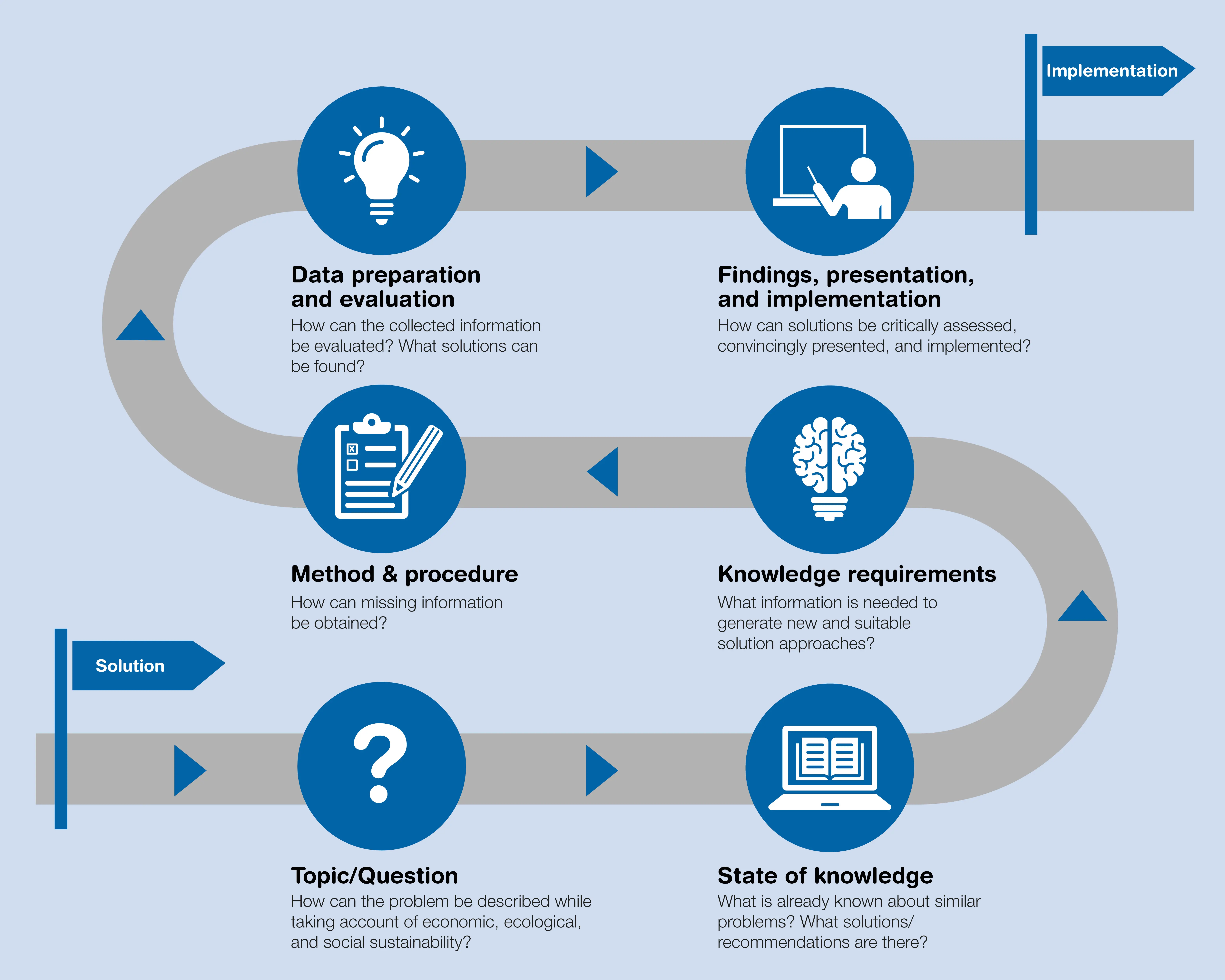 With the help of the problem-solving process we have developed, you will learn to systematically analyze and solve problems in six steps.